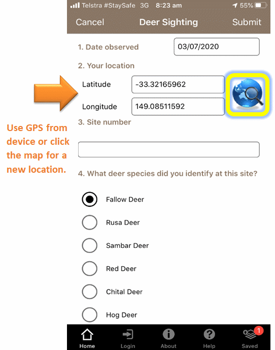 The FeralScan Pest Mapping App can help you to record information about feral deer on your property or in your local area, such as sightings, photos, damage to vegetation and soil, or control activities. Information you record while using the App will display on the DeerScan map.