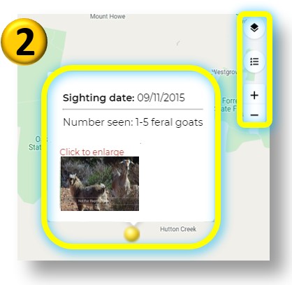 Such as observations of feral goats, footprints, scats or camera photos. The more information you record, the more informative the feral goat map will become over time. Trends in movement will start to emerge, which can be used to decide where control should be undertaken.