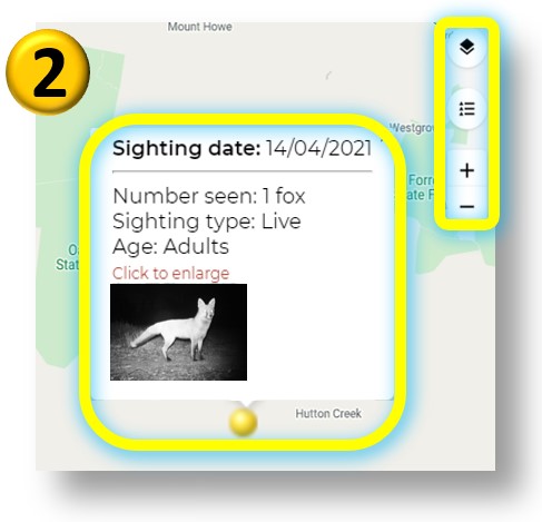 Such as observations of foxes, footprints, scats, barks or camera photos. The more information you record, the more informative the fox map will become over time. Trends in movement will start to emerge, which can be used to decide where control should be undertaken.