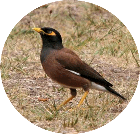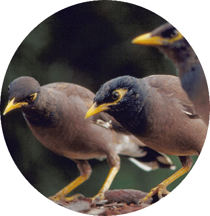 Myna birds are listed by the International World Conservation Union (IUCN) as one of the world's 100 worst invasive species. They are recognised as a threat to many native species and also damage fruit crops, orchards, vineyards, and feed on stock food in rural areas. They are a threat to human health, and are considered a nuisance in cities all over the world.