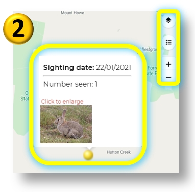 Such as observations of wild rabbits, footprints, scats, warrens or camera photos. The more information you record, the more informative the wild rabbit map will become over time. Rabbit hot spots will start to emerge, which can be used to decide where control should be undertaken.